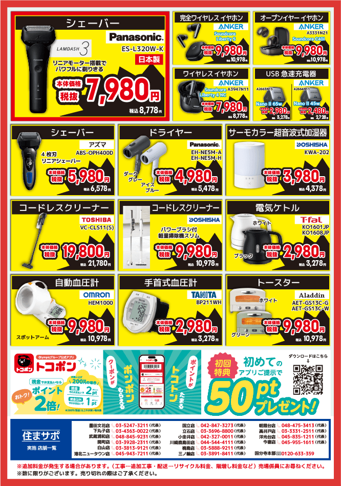 住まサポお買い得情報 シェーバーやケトル、トースター等
